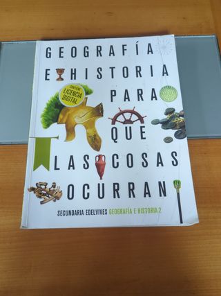Se vende libro de Geografía e historia de 2° de secundaria. ISBN 9788414034729. Editorial Edelvives. Subrayado a fosforito.