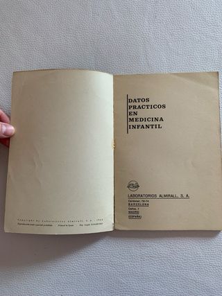 Librito antiguo muy curioso. Datos prácticos en medicina infantil. Ed. Laboratorios Almirall, SA. Madrid, Barcelona, 1964. Estado: bueno pero con una rotura en la parte trasera de la cubierta tal y como se ve en las fotos. Revista libro colección coleccionista diario historia ilustración arte museo antiguo antigüedad exposición enseñanza escuelas estudio física química ciencia natural social biología laboratorio aritmética cálculo matemáticas enciclopedia alumno vintage geografía vintage antropología moderna llibre geologia botanica zoologia agricultura ganaderia industrial médico medicina medicamento universidad congreso hospital