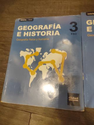 Libro texto Geografía e historia educación secundaria. Está subrayado como se ve en las fotos, de ahí el precio.