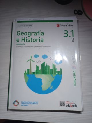 Libro texto Geografía e Historia educación secundaria. Está perfecto aunque tiene alguna esquina por fuera desgastada por el uso