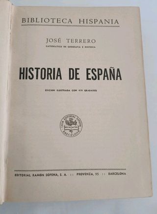 Historia de España. Biblioteca Hispania. Año 1958 José Terrero, catedrático de geografía e historia Edición ilustrada con 419 grabados . Blanco y negro