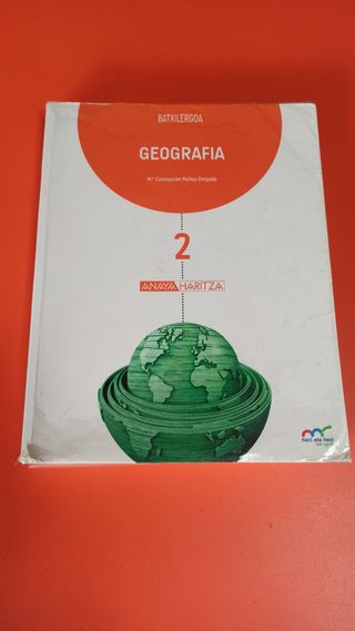 🌍 Libro Geografía – Anaya Haritza – 2º Bachillerato ✅ En muy buen estado, usado solo un curso. ✅ Edición oficial Anaya Haritza, imprescindible para 2º Bachillerato. ✅ Perfecto para clases, deberes y preparación de exámenes de Geografía.