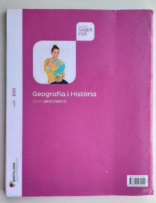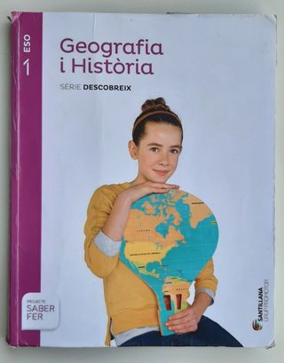 Llibre de Geografia i Història de 1er d'ESO. Sèrie Descobreix. Projecte Saber Fer. Santillana Grup Promotor. ISBN 978-84-9047-904-9 No está subrarrayado ni escrito.