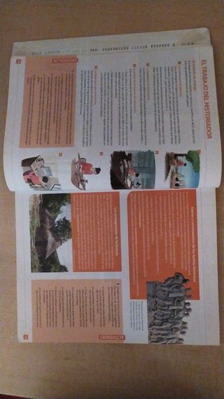 Tiene el sello del centro donde se puede ver los años de uso (2 años) y las personas que lo han utilizado (están tachadas). Son tres libros (historia, historia en inglés y un atlas) se pueden comprar juntos o por separado. En buenas condiciones. Precio Negociable. (15 solo uno)