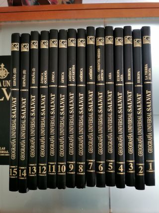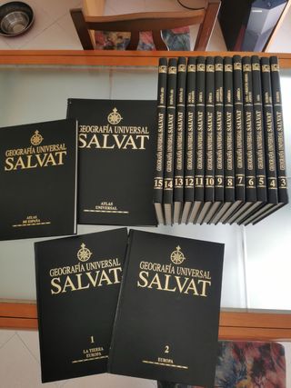 Enciclopedia de Geografía Universal Salvat, con Atlas Universal y de España. 4€ por tomo. 14€ por los 15 tomos numerados. 21€ por los 17 tomos.