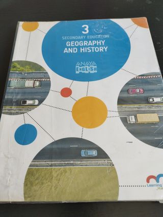 Libro escolar de geografías e historia de 2 de la eso bastante usado pero que sirve perfectamente para estudiar. Tiene algunas páginas subrayadas .