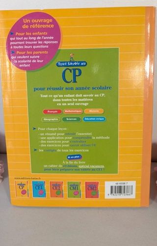 Editorial : Hatier Encuadernación blanda – 160 páginas CP : curso preparatorio de la entrada en primaria Ideal para aprendizaje del francés de forma transversal a temprana edad. Materias: matemáticas, francés, historia, geografía, ciencias, educación cívica. Con ejercicios corregidos, resúmenes y cuaderno de revisiones.