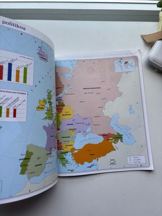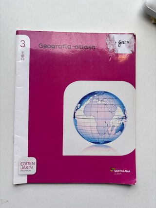 Libro escolar de geografía y historia de la editorial ibaizabal y del curso de 3 eso. El título es: errespetuan hezten zubiak eraikitzen etorkizuna ereiten. El libro no se ha usado esta forrado y con el nombre puesto pero se puede quitar. Precio original: 50e Cuál cosa dimeee!