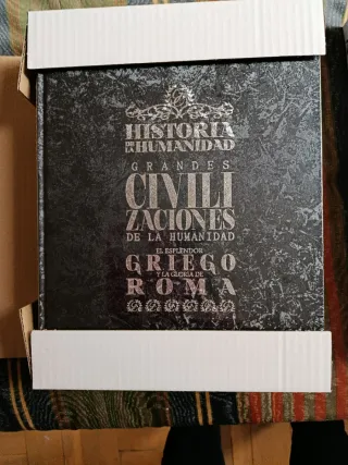 Tres elegantes tomos de grandes civilizaciones de la humanidad encuadernados en tapa dura gris con letras plateadas. Tomos del I al VI - La China milenaria - El esplendor griego y la gloria de Roma - Japón, África Oceanía Conservan su embalaje original