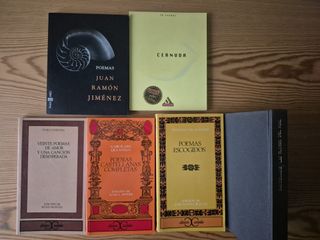 NO envío ni reservo Altolaguirre Poesías completas Lorca Poema del Cante Jondo. Romancero gitano Salinas Antología poética José Ángel Valente Fragmentos de un libro futuro Cernuda 34 poemas Juan Ramón Jiménez Poemas Baudelaire Las flores del mal Agathi Dimitrouka Laureles de silencio Bilingüe Griego-Español José Hernández Martín Fierro Neruda Veinte poemas de amor y una canción desesperada Garcilaso Poesías castellanas completas Quevedo Poemas escogidos
