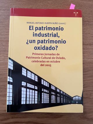 El patrimonio industrial, ¿un patrimonio oxidado? Primeras jornadas de patrimonio cultural de Oviedo celebradas en octubre del 2015. Manuel Antonio Huerta Nuño (coord.). Con pequeño exlibris de antiguo propietario.