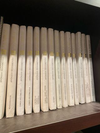 Vendo colección de libros en tapa dura, ilustrados y comentados, ideal para amantes de la historia, el arte y la cultura bíblica. Estado: – Todos los tomos precintados excepto el tomo 1, que está abierto solo para fotos. – En excelente estado, siempre guardados en estantería. Importante: Faltan los tomos nº 10 y nº 14 (colección incompleta). Edición cuidada, ilustraciones a color y textos explicativos de gran calidad. Ideal para completar otra colección, estudio personal o como biblioteca de referencia. Precio ajustado por ser incompleta.