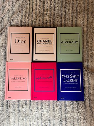 Pack de libros sobre la historia del icono diseñador de la moda de cada marca; Yves Saint Laurent, Chanel por Lagerfeld, Schisparelli, Alexander McQueen y Valentino. (Se puede modificar el pack o comprar libros por separado)