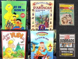 Tapa dura ilustrada. 01. Barrio Sésamo. Es un secreto. Aprender a contar. RBA. 1997. Jim Henson. 02. Videocuentos infantiles. La oca de oro. Planeta Agostini. 1993. 28 págs. 03. Lo que sabe Yupi de los números. Vol. 6. Planeta Agostini. 04. El maravilloso mundo de D'Artacan. Los cruzados de Oriente. Nº 17. Planeta Agostini. 1991. 05. Cinta cassette banda sonora Grease. John Travolta y Olivia Newton-John. RSO Records. 1978. Funciona. 06. Cinta casete Los Sobraos. Quiero Verte / Historias de Amor. 1995. Konga Music. Funciona. Precio no negociable. Consulte opción de compra por unidades.