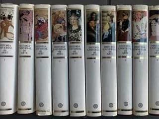 Lote de 11 tomos de libros de Historia Universal del Arte. El último tomo no está numerado y está dedicado a las últimas tendencias. Año 2004. Son de tapa dura y recubiertos de terciopelo. La funda blanca de plástico que se ve está en muy buen estado salvo en un libro que está 1 cm rajada. Auténtica reliquia para coleccionista y/o amantes del arte.