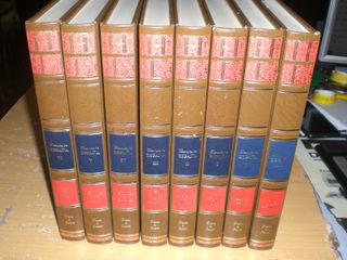 Enciclopedia historia universal desde el principio del mundo a la epoca actual. Tapas duras en color rojo con grabado dorado en cada libro. Son un total de 12 tomos. En buenas condicciones