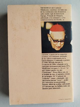 Memorias del Cardenal Mindszenty, primado de Hungría. Sin duda uno de los testimonios más dramáticos sobre medio siglo de historia de Europa. II Guerra Mundial