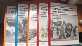 8 títulos de Osprey +1 título RBA sobre las batallas del pacífico. Los títulos son: PEARL HABOUR. EL DÍA DE LA INFAMIA GUADALCANAL. CONTRAATAQUE AL JAPON: EE.UU EN GUERRA BOMBAS SOBRE TOKIO MIDWAY. MOMENTO DECISIVO EN EL PACIFICO GOLFO DE LEYTE. LA MAYOR BATALLA NAVAL DE LA HISTORIA IWO JIMA. LOS MARINES ALZAN LA BANDERA MEIKTILA. LA LIBERACION DE BIRMANIA (ESTE TITULO PUBLICADO POR RBA) OKINAWA. LA ULTIMA GRAN BATALLA LOS PARACAIDISTAS JAPONESES EN LA 2ª GUERRA MUNDIAL (FUERZAS DE ELITE) Todos los libros están nuevos. En tapa dura. 25x19 cms