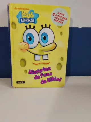 Libro de bob Esponja en catalán, con un pequeño toque en la parte superior