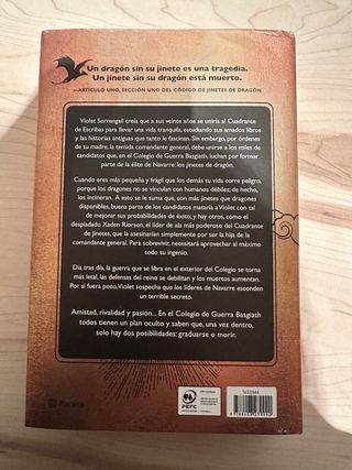 Libro en muy buen estado. Fantasía romántica llena de acción, dragones y tensión. Sigue a Violet en una academia militar donde solo los más fuertes sobreviven… y donde cada decisión puede costarte la vida. Intrigas, rivalidades y una historia que engancha desde la primera página.
