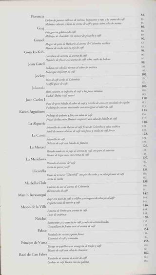 Libro eL CaFé eN La CoCiNa MoDeRNa. ISBN 84-406-6584-9 Edición de la Academia Española de Gastronomía Presentación por Jorge Cárdenas Elogio del café por Luis María Ansón. Recetario de Akelarre, Aldebarán, Arzak, Atrio, Bermeo, Big Rock, Caballo Rojo, Cabo Mayor, Cana Joana, Club Náutico, Chocolate, Echaurren, El Amparo, El Bulli, Cenador del Prado, El Cenador de Salvador, El Dorado Petit, Florencia, Gaig, Girasol, Goizeko Kabi entre otros. Manual Práctico para el mejor consumo del café por Ricardo Oteros. Una bebida con mucha historia de José Chalarca Encuadernado en tela con sobrecubierta ilustrada. Cabezadas. Hilo. 1996 Ediciones