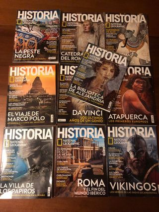 Revistas de historia de National Geographic, números 170, 171, 172,173, 174,175, 176,177, 178,179 La tumba de tu tan Camón, la mezquita de Córdoba, el reino perdido de los incas, así era el mundo antiguo, el final de los romanos, los secretas de Notre-Dame, Quevedo, poeta y espía, la Mona Lisa de Leonardo da Vinci, Mozart, en Viena, la peste en Sevilla