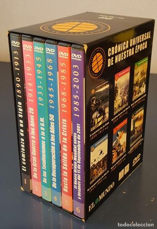PRECIO NEGOCIABLE Historia recogida en 6 DVD'S publicados por “El Mundo” DVD 1: EL COMIENZO DE UN SIGILO /189O-1913 DVD 2: DE LA GRAN GUERRA A LOS AÑOS 20 / 1.914-1.933 DVD 3: DE LOS TOTALITARISMOS A LA SEGUNDA GUERRA MUNDIAL / 1.933-1.945 DVD 4: DE LA RECUPERACIÓN A LOS AÑOS 50 / 1.945-1.968 DVD 5: HACIA LA SALIDA DE LA CRISIS /1.968-1.985 DVD 6: EL NUEVO ORDEN MUNDIAL. ANTES Y DESPUÉS DEL 11 DE SEPTIEMBRE NO HAGO ENVÍOS