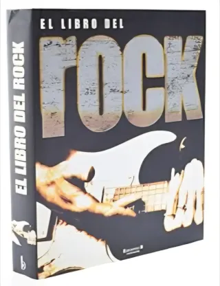 Explora la historia del rock con este libro. - Cubierta con diseño temático de guitarra. - Título principal EL LIBRO DEL ROCK en relieve.