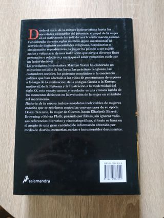 Historia de la esposa - Marilyn Yalom. Salamandra. Tapa dura con sobrecubierta. Muy buen estado con mínimas marcas externas.