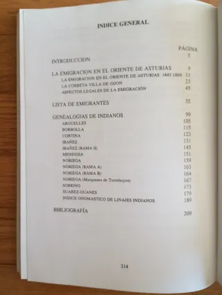 Libro titulado Emigración en el oriente de Asturias 1845-1860 y genealogías de indianos, de Fernando de Alós y Dolores Duque de Estrada. Editorial El Oriente de Asturias, Llanes, 1992. 230 páginas. En muy buen estado, con señales normales de uso. Posibilidad de recogida en mano en León y Asturias.