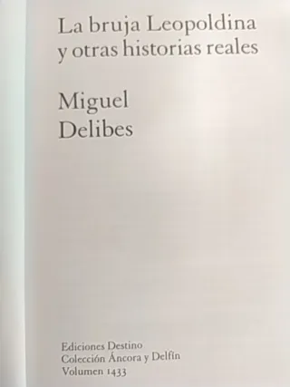 Libro usado "La bruja Leopoldina y otras historias reales", de Miguel Delibes, de 2021 (Ed. Destino, 273pp, col. Obra social FuesCyL), en perfecto estado por 2,65€. Descripción: - Formato: rústica - Dimensiones: 12 x 20 cm aprox. - N° páginas: 273. - Edad: para mayores de 6 años. - ISBN: N/D. Contesto tlf/sms, telegram o mensajes milanuncios/fb marketplace. Acepto pagos en metálico, PayPal o Bizum.