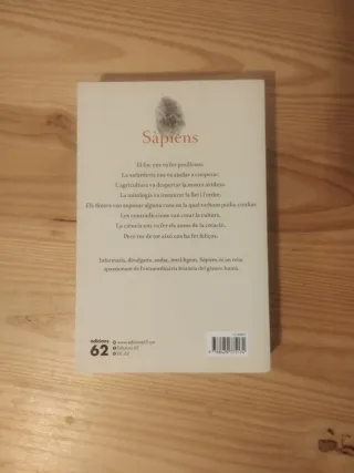 El foc ens va fer perillosos. La xafarderia ens va ajudar a cooperar. L'agricultura va despertar la nostra avidesa. La mitologia va instaurar la llei i l'ordre. Els diners van suposar alguna cosa en la qual tothom podia confiar. Les contradiccions van crear la cultura. La ciència ens va fer els amos de la creació. Però res de tot això ens ha fet feliços. Com podreu veure el llibre està en bon estat en general, el que té és una tasca perquè es va caure alguna beguda a prop.