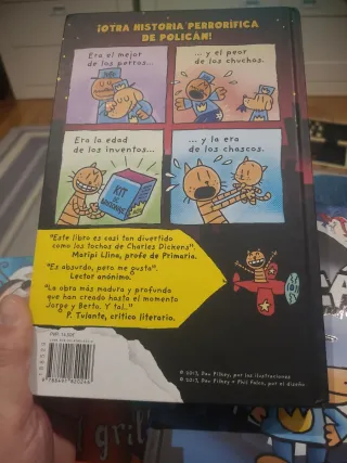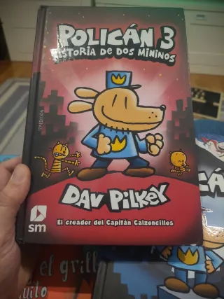 Lote 7 libros Polican. Dav Pilkey. Algunos tienen las esquinas desgastadas. Ver fotos. 1. Polican. Tiene el nombre del propietario escrito. Esquinas desgastadas. 2. Situacion desesperada. Tiene una mancha en el canto. Esquinas algo desgastadas. 3. Historia de los mininos 4. Polican y Chikigato 5. El señor de las pulgas 6. La camada de los salvajes 7. Por quien ruedan las pelotas