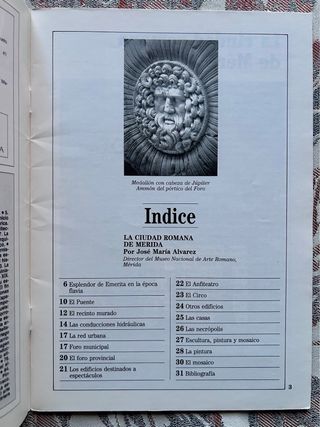 La Ciudad Romana de Mérida es una publicación divulgativa que recorre la historia de Emerita Augusta, destacando su fundación en el 25 a.C. por Octavio Augusto como colonia para veteranos. examina monumentos emblemáticos como el teatro romano (capacidad para 6.000 espectadores), el anfiteatro para venationes, el puente sobre el Guadiana y el acueducto de los Milagros, ilustrados con planos y fotografías. Analiza el urbanismo en damero, el foro provincial y la influencia cultural hispanorromana en época flavia. 32 páginas. Idioma español