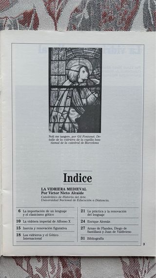 “La vidriera medieval”, el número 98 de la serie Cuadernos de Arte Español, es un monográfico accesible y bien ilustrado dedicado al arte de las vidrieras en la España medieval. Escrito por Víctor Nieto Alcaide y publicado en 1993 por Historia 16, ofrece una síntesis clara sobre la técnica, evolución estilística y ejemplos destacados en catedrales como León o Burgos.