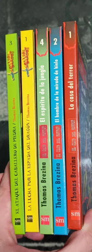 Vendo cinco libros. 3 del club del horror y 2 de corazón de dragón. Con sus sobres y sus accesorios para descubrir los secretos y los tesoros. Son historias interactivas el cual el lector tiene que descubrir los secretos que esconden los libros.