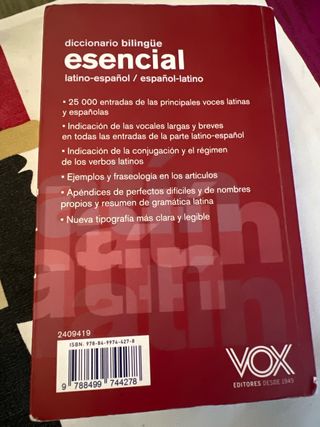 Vendo diccionario latino español y español latino de vox con librito de resumen de gramática latina,es diccionario obligatorio para estudiantes de bachillerato y selectividad, diccionario está nuevo totalmente ,sin usar.
