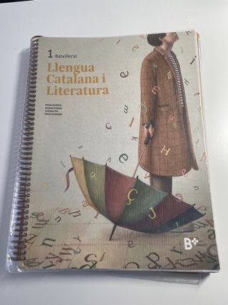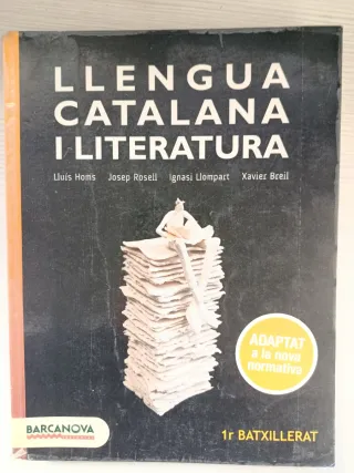 Libro de texto de Llengua catalana i literatura para 1º de BAT. - Cubierta con diseño de librería. - Incluye el logo de Text.