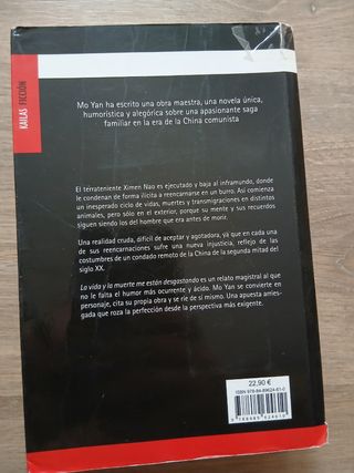 Vendo La vida y la muerte me están desgastando de Mo Yan, edición de bolsillo en excelente estado. Esta novela, que le valió el Premio Nobel de Literatura en 2012, narra la historia de Ximen Nao, un terrateniente ejecutado que, tras su muerte, se reencarna en varios animales, viviendo sucesivas vidas que reflejan las transformaciones sociales y políticas de China en el siglo XX. Con un estilo único que combina realismo mágico y sátira política, es una obra imprescindible para los amantes de la literatura contemporánea. Acepto cambios en Madrid