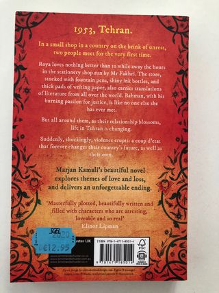 1953, Tehran. Roya loves nothing better than to while away the hours in the local stationery shop run by Mr. Fakhri. The store, stocked with fountain pens, shiny ink bottles, and thick pads of writing paper, also carries translations of literature from all over the world. And when Mr. Fakhri introduces her to his other favorite customer -- handsome Bahman, with his burning passion for justice and a shared love for Rumi's poetry -- Roya loses her heart at once. But around them, life in Tehran is changing.