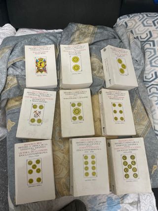 Vendo colección de libros de los mejores literatos españoles compuesta de 18 libros (en la foto principal aparecen 17, hay uno que está tachado porque ya se vendió, pero son 18 en total, el otro está en fotografía aparte). Antonio Machado, Fernando de Rojas, Leopoldo Alas Clarín, Gonzalo de Berceo.... una colección única de novelas y libros de poemas de la LiteraturaEspañola. Comprando el lote, la unidad sale a 2,5 €. También los vendo por unidad, a 5 € el libro. En perfecto estado, sin estrenar, nunca leídos, completamente nuevos.