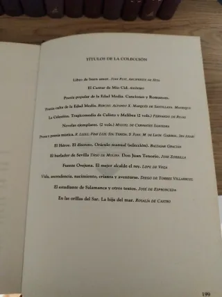 Tragedias - Shakespeare. Escritores místicos españoles. Don quijote - Cervantes. Novelas y cuentos - Dostoiewsky y Tolstoi. La divina comedia -Alighieri. Fausto - Goethe. Obras escogidas - Quevedo. Teatro - Calderón Barca. Teatro - Lope Vega También se venden por separado a 4€/u.