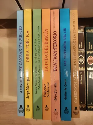 Lista Clásicos Españoles de El País (ed. 2005): Poeta en Nueva York //Historia del corazón La arboleda perdida //Cancionero y romancero de ausencias //Young Sánchez y otros cuentos //Sonata de primavera //Cántico de Jorge Guillén // El romancero español //Fábulas de Iriarte y Samaniego //Vuelva usted mañana y otros artículos //Pepita Jiménez --- El Cantar de Mío Cid (ed. 2007) Las flores del mal (2ª ed. 1984) Don Juan Tenorio (edición 1965) Guillermo Tell (edición 1970) Poesía de Fray Luis de León (3ªed. 1985) Quevedo// Jorge Manrique// Lope de Vega (Peribañez y el comendador+ La