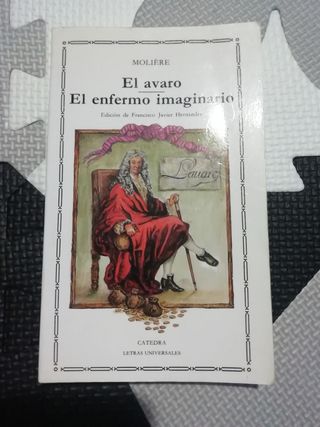 El avaro de Molière gira en torno a Harpagón, un hombre rico y extremadamente avaro que vive privando a sus hijos, Cleanto y Elisa, de recursos y afecto. La trama se complica cuando Harpagón, además de planear casar a su hija Elisa con un hombre mayor y rico, se enamora él mismo de Mariana, la misma joven que su hijo Cleanto ama. La obra es una sátira que muestra los enredos y conflictos que surgen por la avaricia de Harpagón, especialmente después de que su tesoro sea robado, lo que lo lleva a sospechar de todos. El enfermo imaginario y el avaro en tapa blanda de bolsillo en español con prólogo de Francisco Javier Hernández.