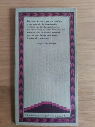 Bartleby, el escribiente, en la edición de La biblioteca de Babel, presenta la célebre historia del escribiente que responde a todas las órdenes con su enigmático “preferiría no hacerlo”. A través de este personaje silencioso y rebelde, Melville construye un relato fascinante sobre la pasividad, la alienación y la resistencia invisible dentro del mundo laboral moderno. La Biblioteca de Babel es una mítica colección de literatura fantástica dirigida por Jorge Luis Borges y editada en 1979 en Buenos Aires