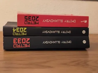 Trilogía inicial Metro 2033. Pertenecientes a la serie de novelas desarrolladas dentro del universo creado por Dmitry Glukhovsky. Impecable como se aprecia en las fotos. Las fotos forman parte de la descripción. Tags: metro 2033, Gears of war, Witcher, halo, ciencia ficción, Play, PlayStation, ps4, ps5, Xbox, star wars, Star Trek, videojuego, videoconsola, juego pc, juego rol, Literatura fantástica, saga, Dungeons dragons, yermo, ecc, panini comics, nosolorol, devir, joc