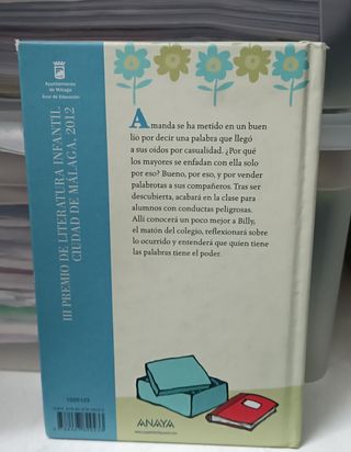 III Premio de Literatura Infantil Ciudad de Málaga, 2012 Un libro lleno de humor inteligente y juegos con el lenguaje Amanda se ha metido en un buen lío por decir una palabra que llegó a sus oídos por casualidad. ¿Por qué los mayores se enfadan con ella solo por eso? Bueno, por eso, y por vender palabrotas a sus compañeros y compañeras. Tras ser descubierta, acabará en la clase para alumnos y alumnas con conductas peligrosas. Allí conocerá un poco mejor a Billy, el matón del colegio, reflexionará sobre lo ocurrido y entenderá que quien tiene las palabras tiene el poder.