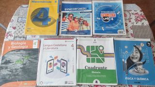 Lote completo 100 euros, sueltos 20 euros cada uno, solo entrega en mano. Biología y Geología 4 - ISBN 9788418242274 Historia Cuadrante 4 - ISBN 9788430756902 Matemáticas 4 B - ISBN 9788421875940 Syncronize 4 student book - ISBN 9780194065979 Vendido Syncronize 4 workbook - ISBN 9780194065641 Lengua Castellana y Literatura 4 - ISBN 9788468293141