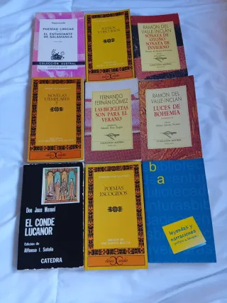 Todos los libros están muy bien conservados, excepto el conde de lucanor que tiene la portada un poco desgastada. El lote completo 10€. Entrega en mano en Badajoz, Cáceres y merida.