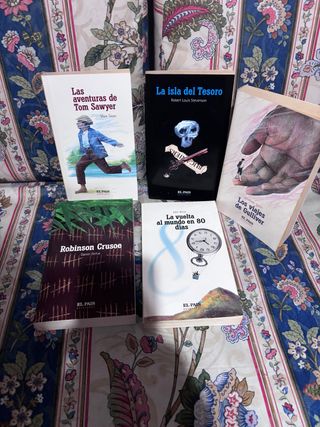 Lote 5 libros en español tapa blanda y de bolsillo de la literatura clásica juvenil. Editados por El Pais. Una maravilla colección de aventuras inolvidables. Muy buen estado. SE HACEN ENVÍOS #juvenil#aventuras#coleccion#coleccionismo#lausladeltesoro#robertlouisstevenson#robinsoncrusoe#danieldefoe# lavueltaalmundoen80dias#julioverne#losviajesdegulliver#jonathanswift#lasaventurasdetomsawyer#marktwain#lieraturajuvenil#segundamano#formatofisico